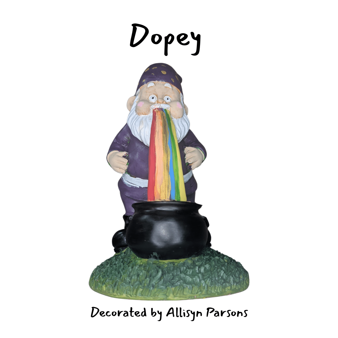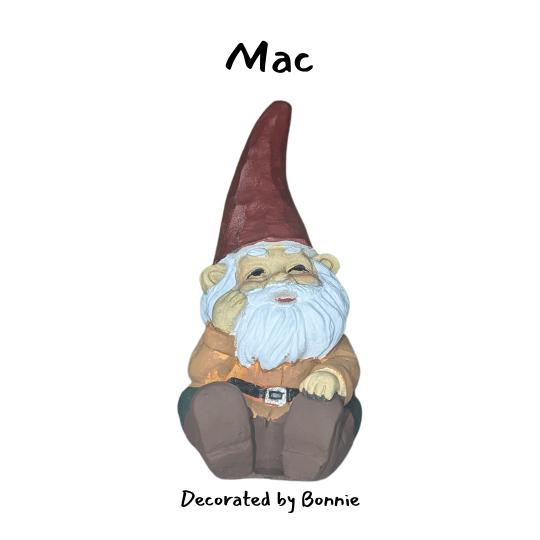 Each Gnome featured in this years Gnome Roam was decorated and named by a local artist.